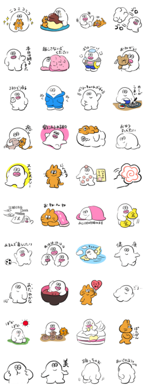おもちの欲望だらけのスタンプ!欲だらけのおもちを集めてみたら、あれ?いつもと同じ…!?猫のチマキも一緒です。くまちゃん、プリン、お昼寝。毎日がお休み♪シリーズ有かじぱん より発売