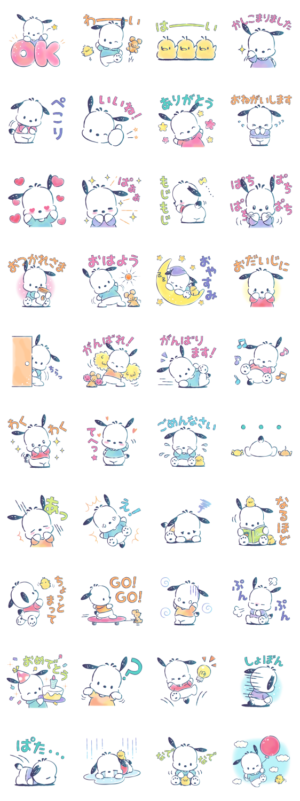 好奇心旺盛で、おっちょこちょいなポチャッコが、爽やかな水彩タッチのスタンプになって登場♪