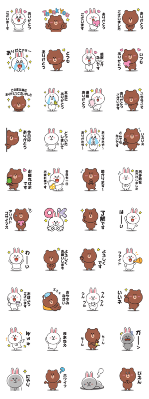 ブラウン&コニーの気持ちを伝えるスタンプです♪恋人や友達に感謝の気持ちを伝えましょう♪