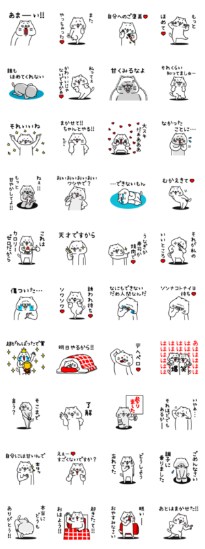全力でうざい全力でおちょくるあざとかわいいねこが自分に優しく他人に厳しい。家族や友達や後輩に先輩。ありとあらゆる仲間に甘えるスタンプ。自分へのご褒美好きに捧ぐ。cosotto より発売