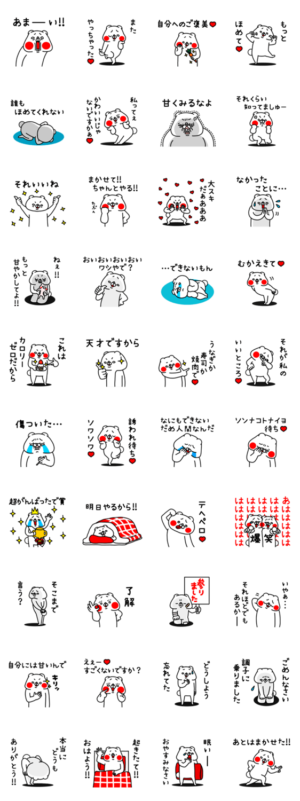 全力でうざい全力でおちょくるあざとかわいいくまが自分に優しく他人に厳しい。家族や友達や後輩に先輩。ありとあらゆる仲間に甘えるスタンプ。自分へのご褒美好きに捧ぐ。