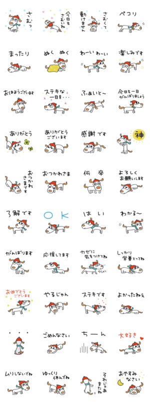 犬のウッピー。冬編。「さむっ」「今日もさむいね」から「カゼに気をつけてね」まで。冬の寒さをウッピーと一緒に乗り切ろう。家族、学校、お仕事でも。Mami / エストループ より発売