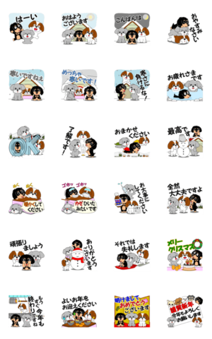 お子ちゃまワンコたちが敬語でメールをお手伝いします。クリスマスや年末や正月の挨拶も入ってます。
