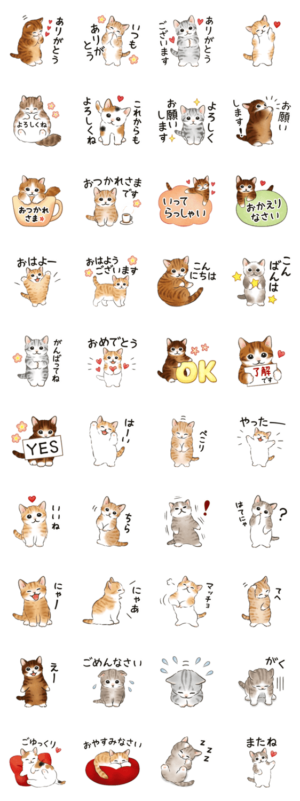 かわいいねこたちの、日常でよく使う挨拶などのスタンプです♪(敬語/シンプル)erimari より発売