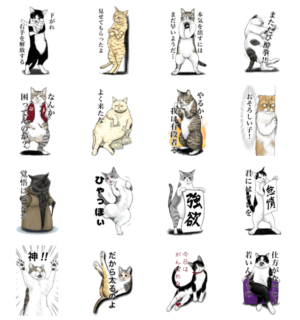 リアル風でしかも人間っぽい猫が素敵です。癒やし風の猫スタンプもいいですが、これも素敵ですよ。