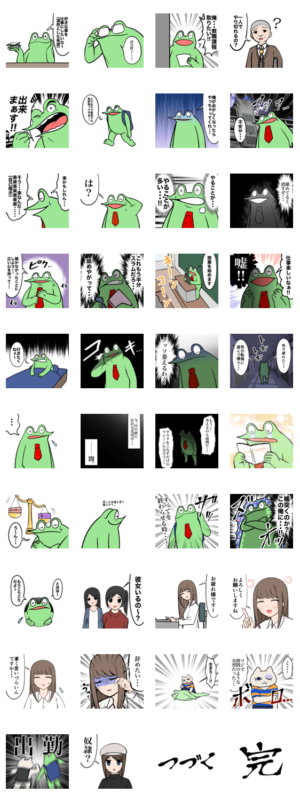 Twitter、livedoorブログで大反響のカエルDX教職レポ漫画がLINEスタンプで登場!!教師を目指す人は勿論、会社員として戦う人にも使えるよう台詞をアレンジしています!!