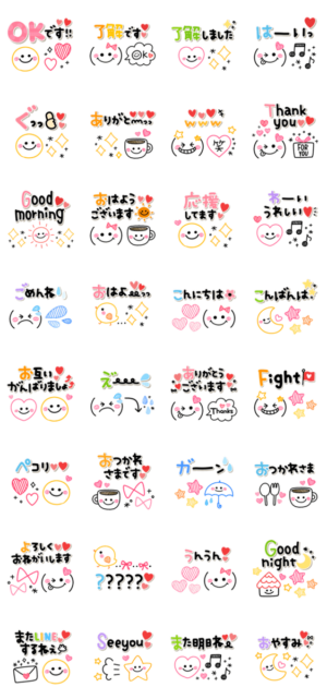 カラフル☆ボールペンで手紙を書いたようなシンプルで可愛いスタンプです♪みんなが使える無難な日常会話セット