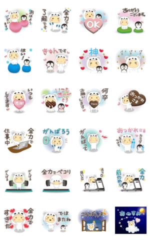 白くまんとチビぺん♡頑張る気持ちでご挨拶 スタンプ画像一覧