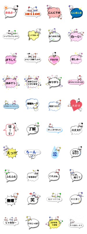 カラフル雪だるま(スノーマン)のふきだしスタンプです。Hiro より発売