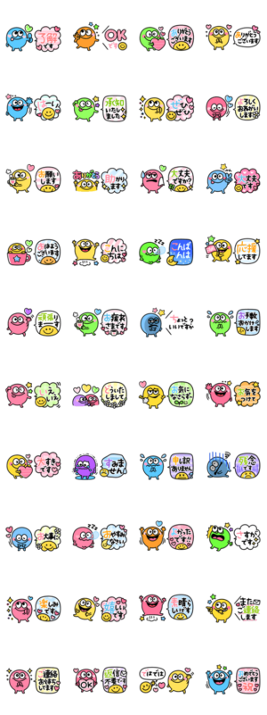 カラフル可愛いモンスター♡敬語吹き出し スタンプ画像一覧