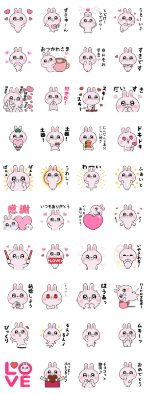 気持ちを伝えるうさぎのラピピのかわくて面白いスタンプ。告白/プロポーズ/好き/結婚/ラブ/感謝/チョコレート/バレンタインデー/記念日