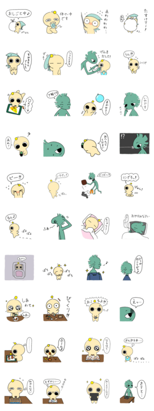 2作目ができたよ!宇宙人ユポと恐竜人マーシーのほっこりできるスタンプだよ。よろしくねっ。UPO より発売