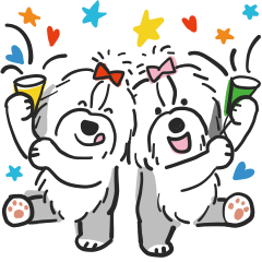 オールドイングリッシュシープドッグの花ちゃんと桃ちゃんのスタンプです。(2022)