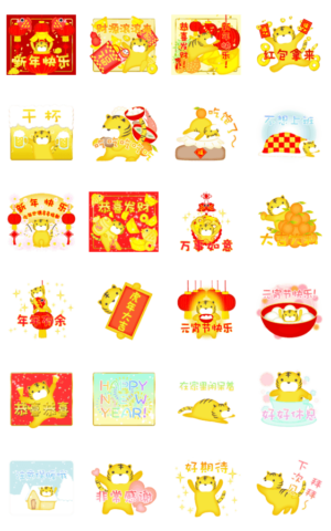 簡体字【春節】新年快乐! ラッキータイガー スタンプ画像一覧