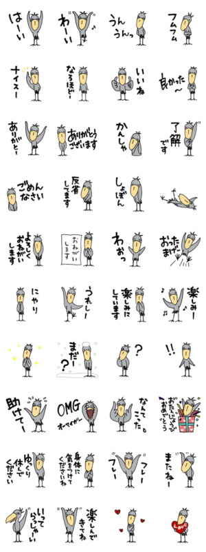 ハシビロコウの気持ちを伝える毎日便利な大きめ文字のスタンプです♪トマト より発売