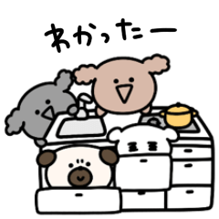 シュールなミニ犬集団の家族ラインスタンプです。eribo より発売
