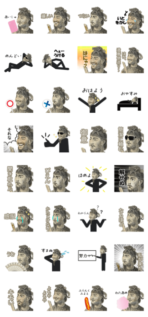 日常で使える面白いスタンプです。シュール/お金/それな/うける/爆笑/武士語/挨拶/はにゃ/ぴえん/古語/古文/ゆるい/可愛い/ピクトグラム/アイス/適当/煽り/笑い/ネタ/