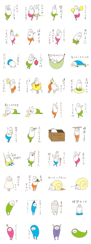 ねこタイツの敬語スタンプ第3弾です。ねこタイツのまったりポーズとゆるい敬語でトークをゆるく和やかに。くらきち より発売