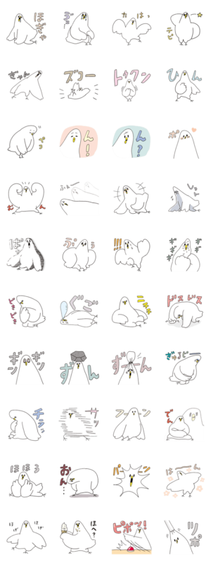 すこぶるむちむちボディの白い鳥「むちっ鳥」。 リアクション重視スタンプです。shigemi より発売