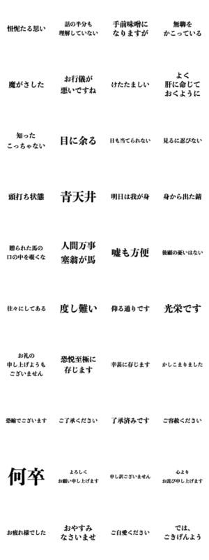 丁寧な人が使っていそうな日本語テキスト スタンプ画像一覧