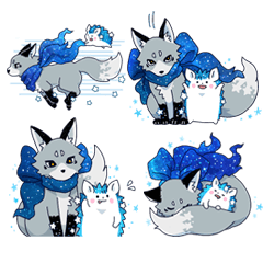 星ハリネズミのフフと夜空を旅する宙(ソラ)キツネのクンのスタンプ。翔太郎 より発売