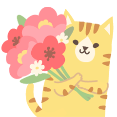 甘さ控えめ大人女子向け茶トラ猫♪毎日のあいさつに使えるシンプルねこ。気持ちを伝える言葉、気遣い敬語や挨拶あり。 年中使えます。花、スイーツ、ハート、バレンタイン