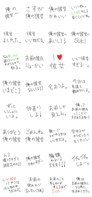 文字だけのシンプルなスタンプですが、そこが逆に目をひきました。手書きっぽいのでもしかしたら文字より気持ちが伝わるかもしれないと淡い期待をもってしまう面白いスタンプです。