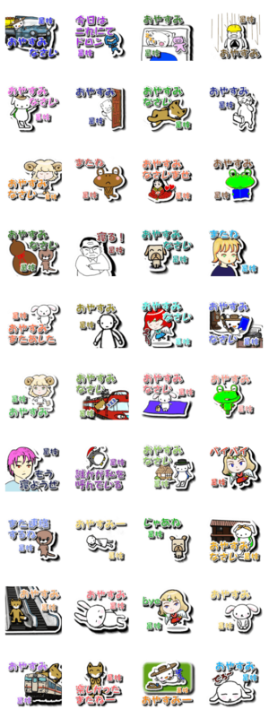 おやすみ おやすみなさい じゃあね またね など トークを終わる時にも使える 立体風の絵と文字のスタンプらくはしら より発売
