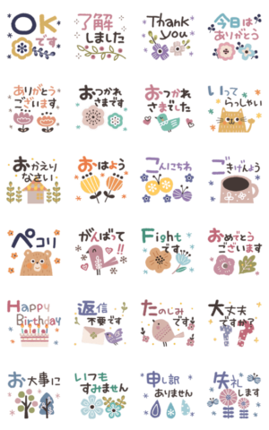 可愛い北欧タッチのお花や動物達を使える敬語スタンプにしました。使いやすい言葉を厳選しました。NAKAYUKA より発売