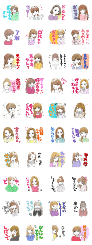 友達や恋人に使える関西弁の可愛い女の子スタンプ♪(かわいい.毎日.方言.大阪弁.カップル.日常.定番.挨拶)