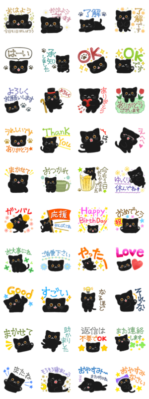 大人かわいい毎日使いたくなる黒猫8 スタンプ画像一覧