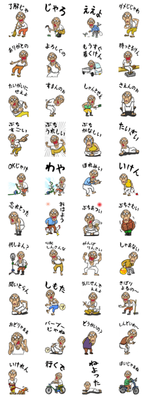 広島弁を喋るおじいさんの大きなスタンプ【BIG】バージョンです。大きいイラストで見やすくて、大きな文字で読みやすいスタンプです ※このスタンプはトークルームで大きく表示されるBIGスタンプです。Brody Machine より発売