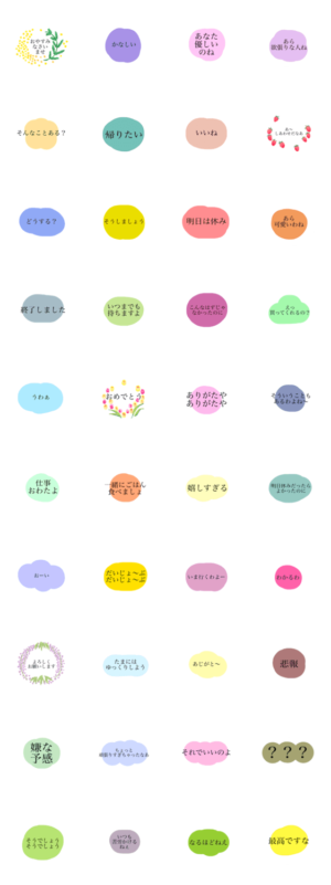 ちょんぼりちょろすけの毎日を華やかに彩る絵の具のパレットのようなスタンプ。優雅に、お上品に、ときにはちょっぴり大胆に。あらゆるシーンで活躍します。