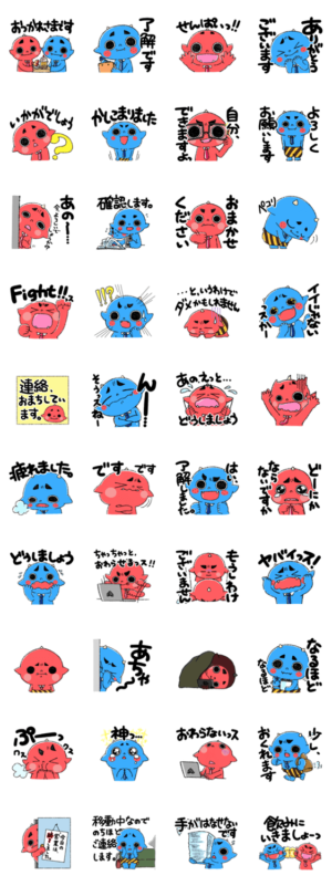 いつもは関西弁の鬼ちゃんたちがビジネスシーンに合した、後輩キャラになりきったお仕事系の敬語スタンプです。とみぃはにぃ より発売