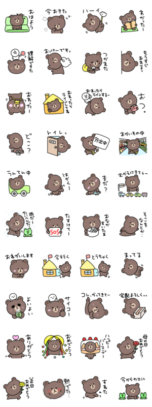 家族同士のLINEで使えるスタンプ。シュールな無表情ブラウンがなんともいえなくてじわじわと可愛く思えてきます。