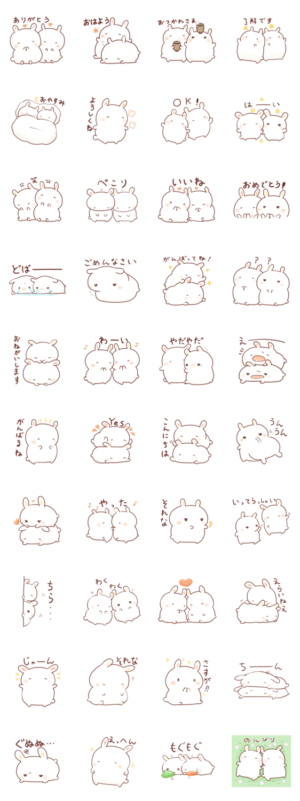 もちもちやわらか仲良しうさぎ。 ピンク耳丸しっぽの「もちまる」 おだやかで優しい性格。 黄色耳三角しっぽの「ぽてっこ」 あまえんぼさん。さく子 より発売