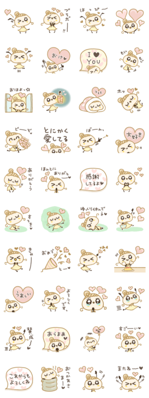 柔らかほっぺのほぺ美ちゃん◎愛が伝わる、ハート柄スタンプ40個描きました♪画面の向こうの大切な方へ是非どうぞ。小さな幸せ/感謝あさごぱん より発売