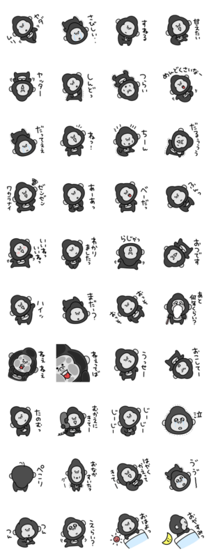 過保護に育ったシュールなミニゴリラのスタンプです。※再販です。eribo より発売