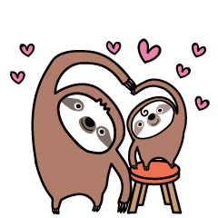 チビと一緒のなまけものとちゃうよシリーズ、気持ちを伝える【動く】スタンプ。ナマケモノだけど「ありがとう」や「好き」、思いやりの気持ちはちゃんと伝えたいのです。