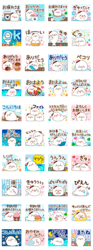 あなたの心に寄り添うアザラシの毎日使える気遣いスタンプです。愛嬌があるかわいい子なので、可愛がってあげると喜びます。