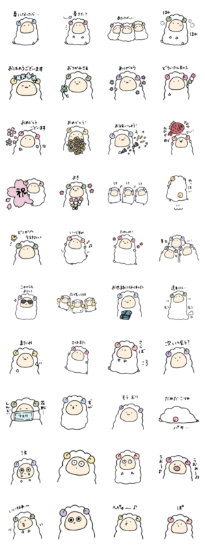 ゆるくてもこもこ、ひつじさんの仲間たち第10弾!春に使えそうなスタンプです。ao より発売