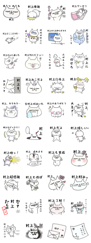 村上さんの村上さんによらない村上さんのためのスタンプです。 どこか憎めないブサ猫の表情をお楽しみください!