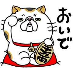 招き猫のマネキネコちゃんがトークのお手伝い。普段使いに使いやすいスタンプです。にじいろはんこ より発売