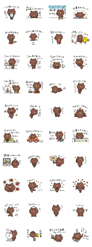 ゆるゆるブラウンの家族メッセージ(改訂版) スタンプ画像一覧