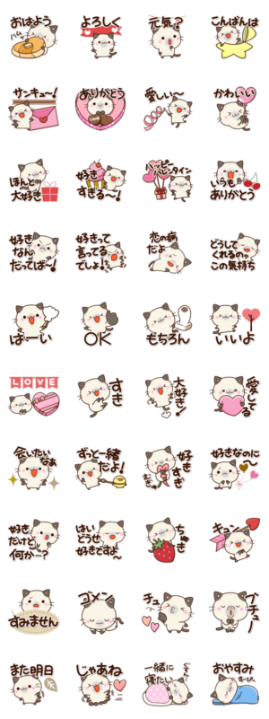 『ちびシャム』の恋人、夫婦、バレンタイン等、好きな人に思いを伝えることができる、ねこスタンプです。かわいいネコが気持ちを代弁します。猫好きの方にぜひ。【かたこ】かたこ より発売
