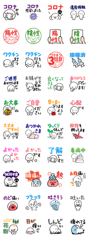 コロナ感染&ワクチン3回目&お見舞い スタンプ画像一覧