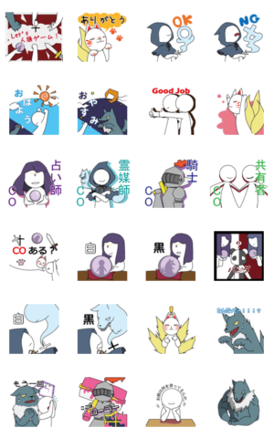 人狼GMを利用した人狼ゲームで使いやすいスタンプです。 Let's 人狼ゲーム!人狼GM より発売