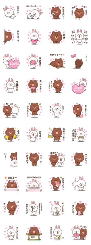 コニー&ブラウンのラブラブスタンプです♪恋人や友達に大好きな気持ちを表現しましょう♪