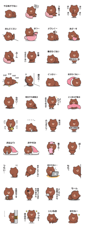 ブラウンのいまいちやる気が出ない時に使うスタンプです。 ※BROWN & FRIENDS をみんなでつくろう!キャンペーン参加スタンプですパン より発売