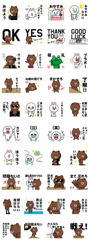 ブラウン/LINEキャラクターズ/日常会話/毎日使える/挨拶/敬語/大人も使える/見やすい/デカ文字/シニア/アダルト/おじいちゃん/おばあちゃん/使いやすい/初級編/初心者向け ※BROWN & FRIENDS をみんなでつくろう!キャンペーン参加スタンプです4A-Studio(よんえーすたじお) より発売